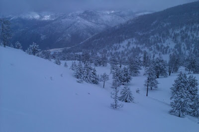 Dia tranquil pujant a la Torreta de l'Orri amb esquí de muntanya, tot i que amb fort vent, borrufa i poca visibilitat, ... però amb neu pols perfecta.